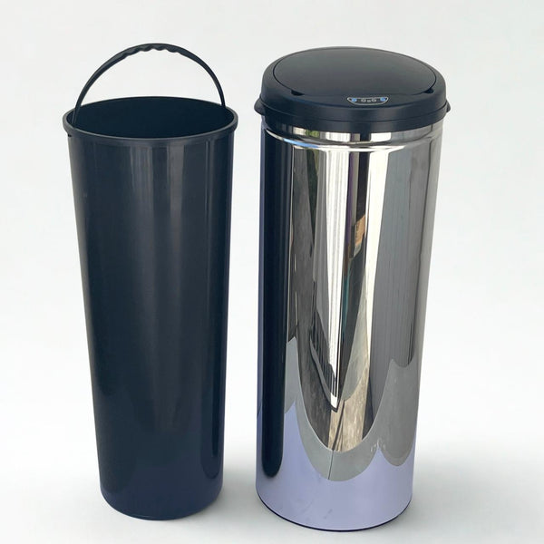 Papelero acero inoxidable automático con sensor, Evolution, capacidad 50 litros, con contenedor de plástico negro removible, abre y cierra de forma automática.